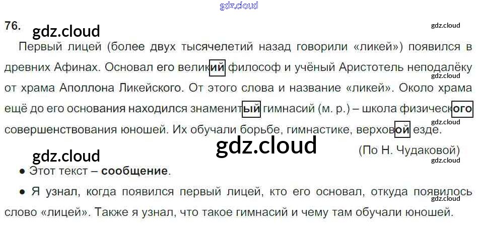 Ответ на задание 76 Тетрадь для упражнений Русский язык за 4 (четвертый) класс Рамзаева, Свинкина 2013 Часть 1, 2