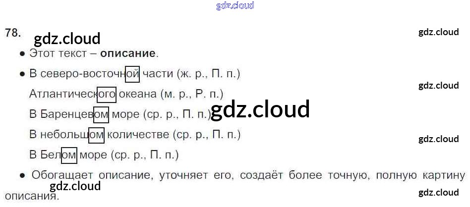 Ответ на задание 78 Тетрадь для упражнений Русский язык за 4 (четвертый) класс Рамзаева, Свинкина 2013 Часть 1, 2