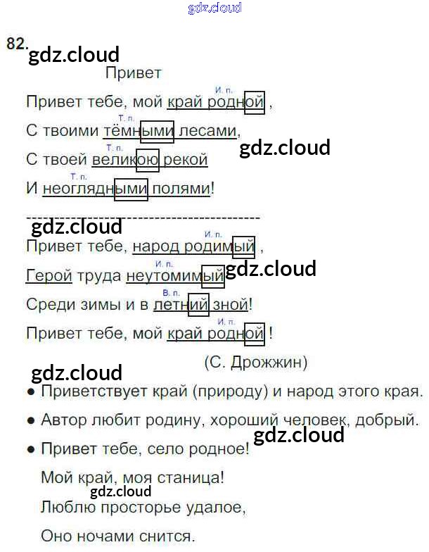 Ответ на задание 82 Тетрадь для упражнений Русский язык за 4 (четвертый) класс Рамзаева, Свинкина 2013 Часть 1, 2