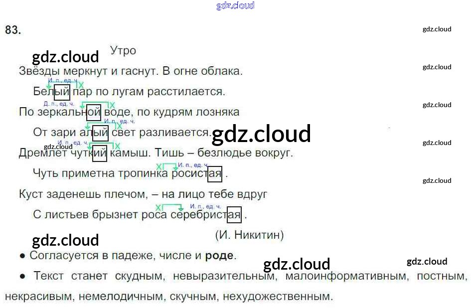Ответ на задание 83 Тетрадь для упражнений Русский язык за 4 (четвертый) класс Рамзаева, Свинкина 2013 Часть 1, 2