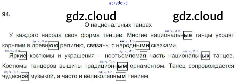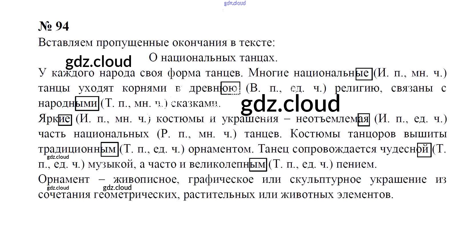 Ответ на задание 94 Тетрадь для упражнений Русский язык за 4 (четвертый) класс Рамзаева, Свинкина 2013 Часть 1, 2