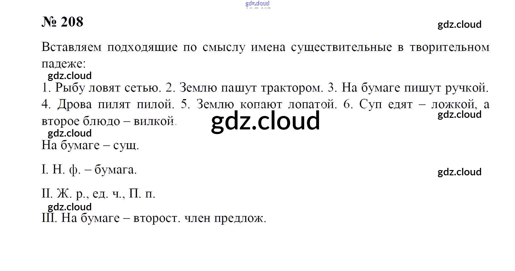 Ответ на задание 208 Учебник Русский язык за 4 (четвертый) класс Рамзаева 2014 Часть 1, 2