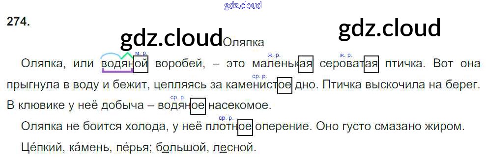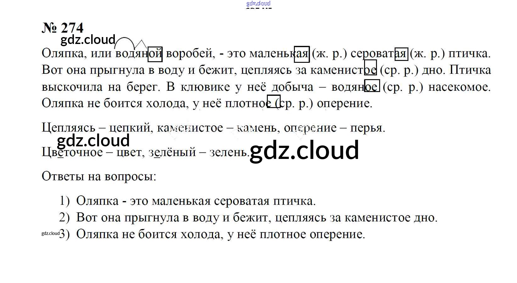 Ответ на задание 274 Учебник Русский язык за 4 (четвертый) класс Рамзаева 2014 Часть 1, 2