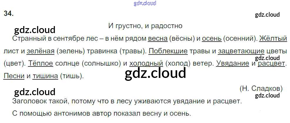 Ответ на задание 34 Учебник Русский язык за 4 (четвертый) класс Рамзаева 2014 Часть 1, 2