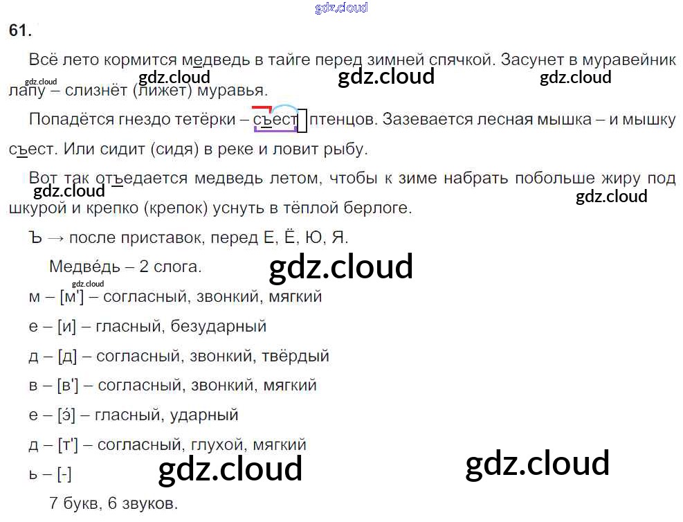 Ответ на задание 61 Учебник Русский язык за 4 (четвертый) класс Рамзаева 2014 Часть 1, 2
