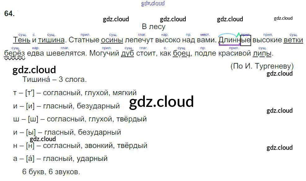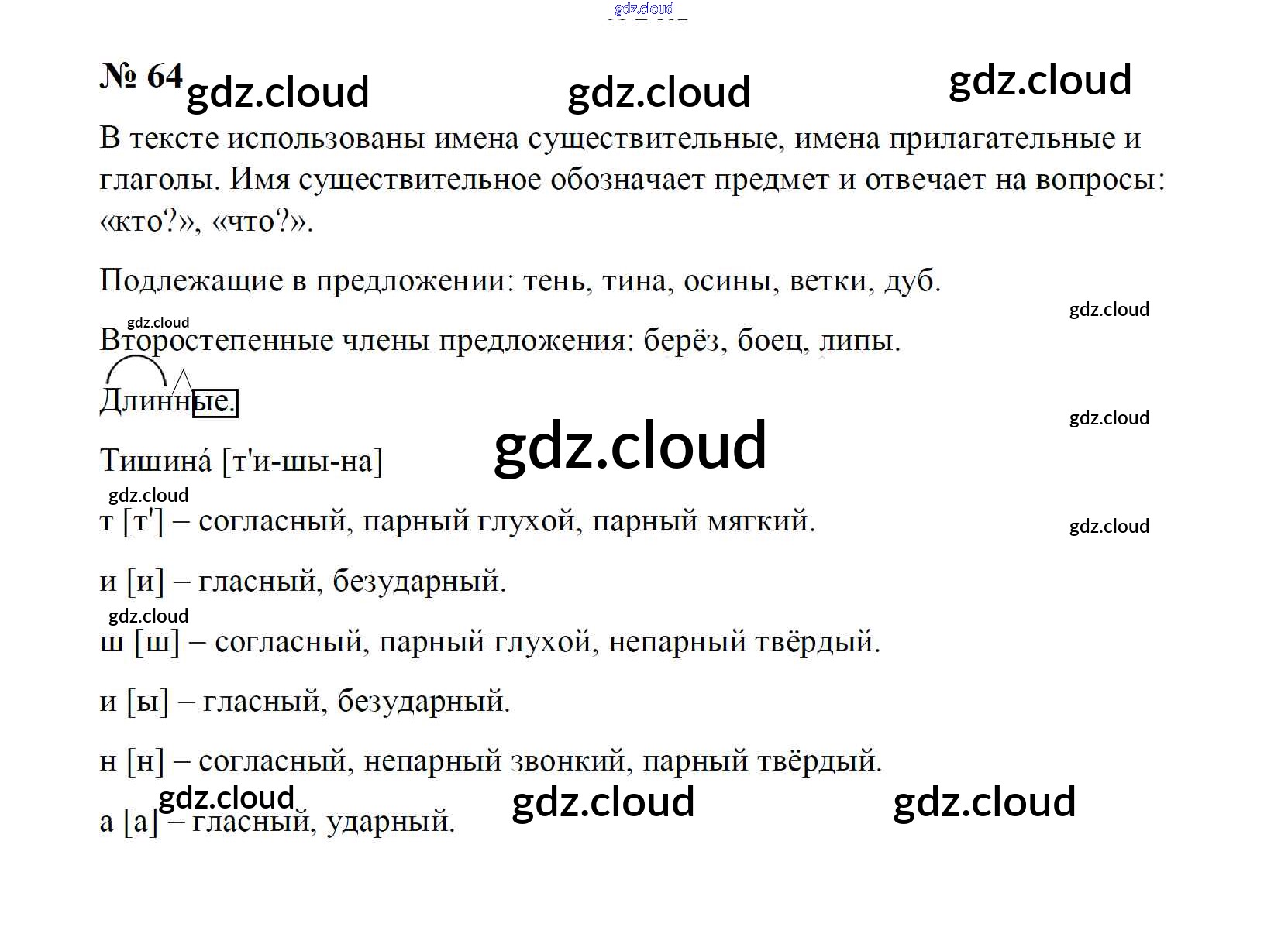 Ответ на задание 64 Учебник Русский язык за 4 (четвертый) класс Рамзаева 2014 Часть 1, 2