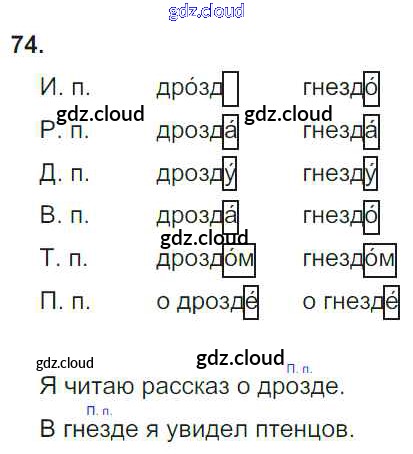 Ответ на задание 74 Учебник Русский язык за 4 (четвертый) класс Рамзаева 2014 Часть 1, 2