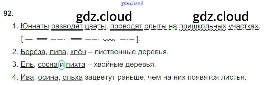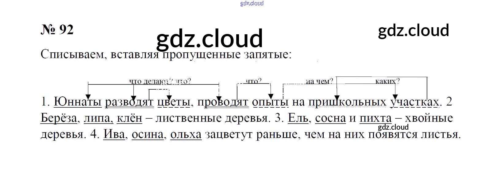Ответ на задание 92 Учебник Русский язык за 4 (четвертый) класс Рамзаева 2014 Часть 1, 2