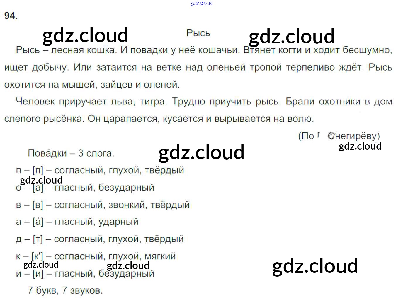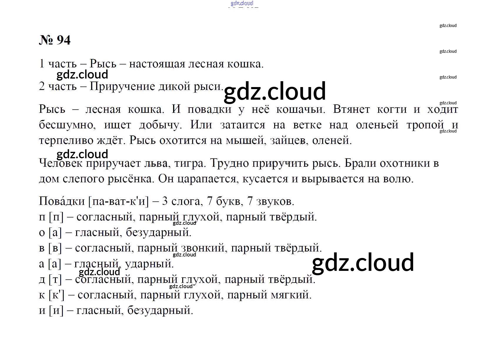 Ответ на задание 94 Учебник Русский язык за 4 (четвертый) класс Рамзаева 2014 Часть 1, 2