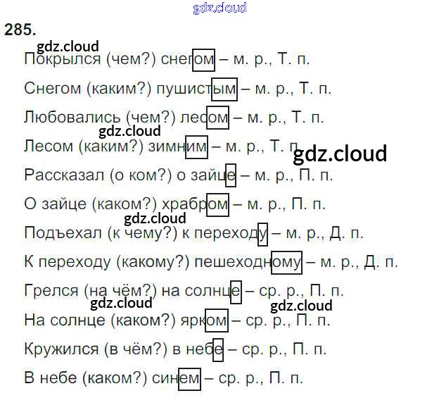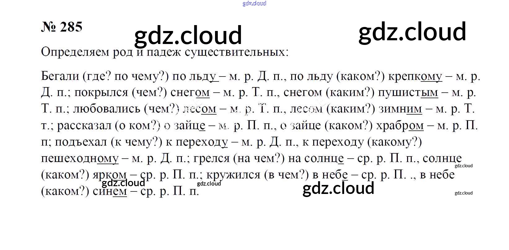 Ответ на задание 285 Учебник Русский язык за 4 (четвертый) класс Рамзаева 2014 Часть 1, 2