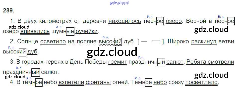 Ответ на задание 289 Учебник Русский язык за 4 (четвертый) класс Рамзаева 2014 Часть 1, 2