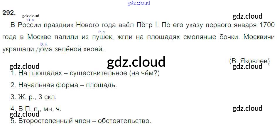 Ответ на задание 292 Учебник Русский язык за 4 (четвертый) класс Рамзаева 2014 Часть 1, 2