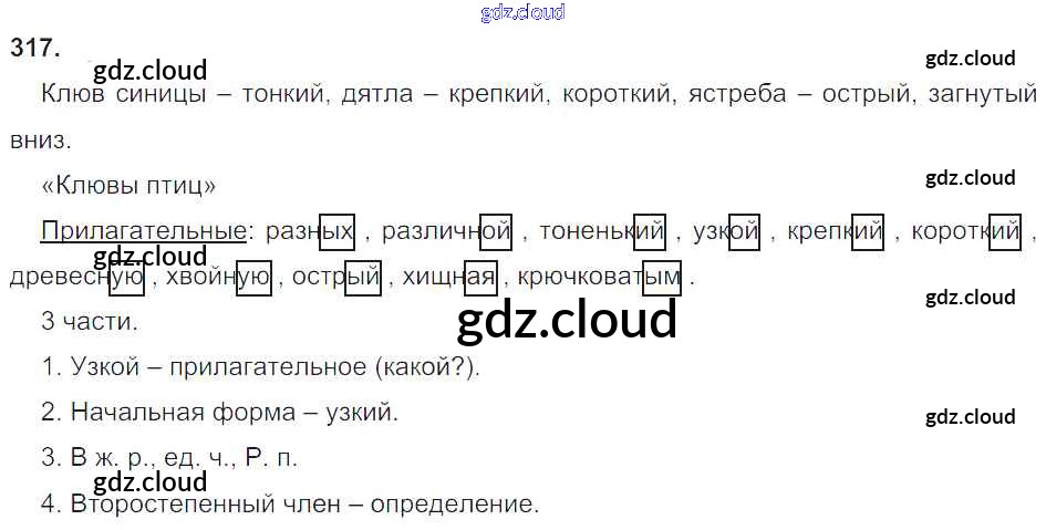 Ответ на задание 317 Учебник Русский язык за 4 (четвертый) класс Рамзаева 2014 Часть 1, 2