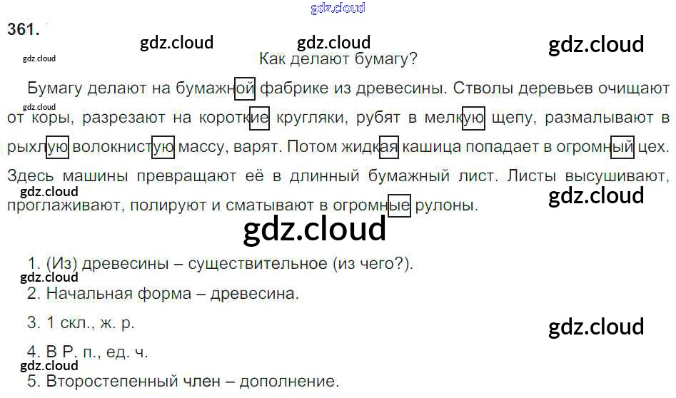 Ответ на задание 361 Учебник Русский язык за 4 (четвертый) класс Рамзаева 2014 Часть 1, 2