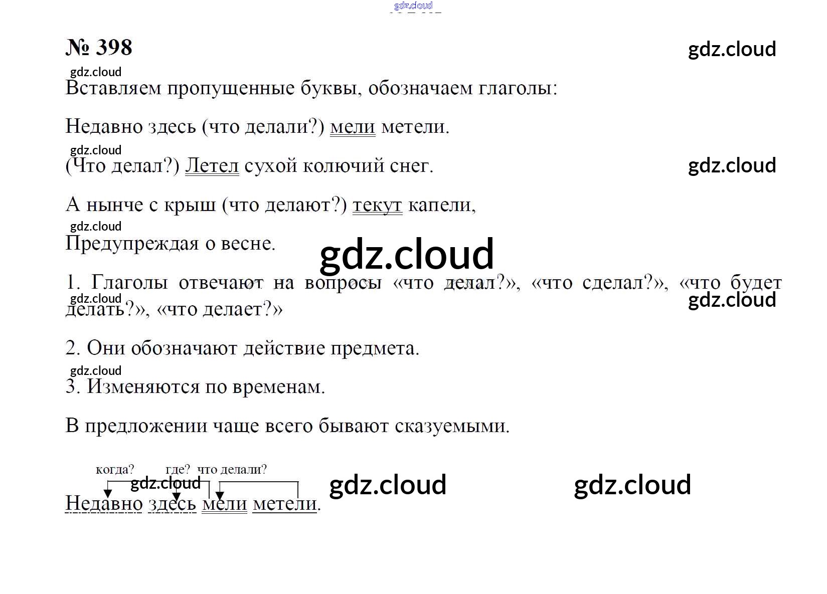 Ответ на задание 398 Учебник Русский язык за 4 (четвертый) класс Рамзаева 2014 Часть 1, 2
