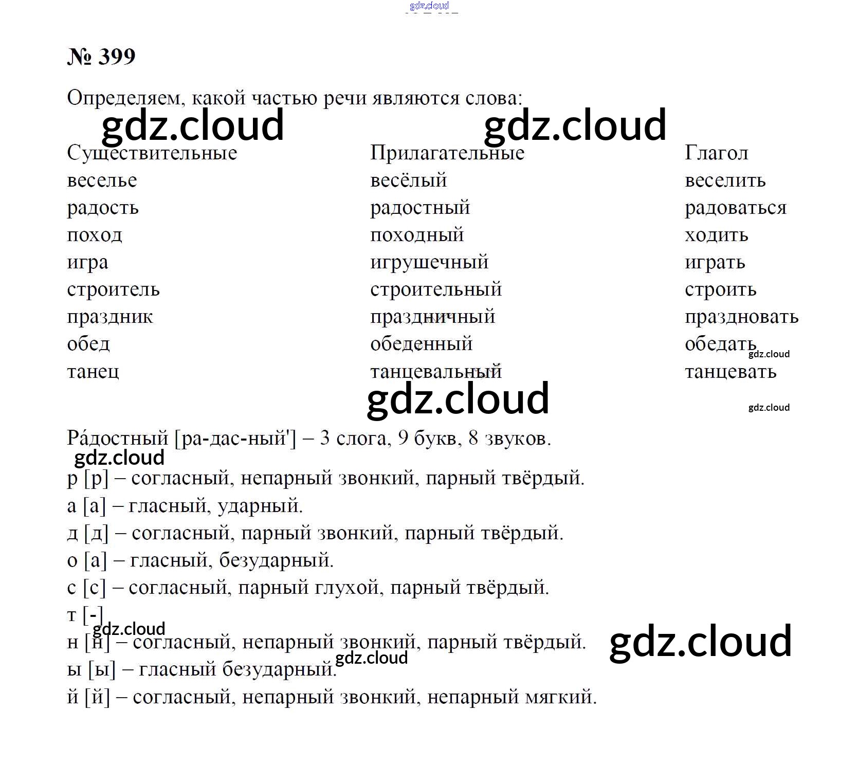 Ответ на задание 399 Учебник Русский язык за 4 (четвертый) класс Рамзаева 2014 Часть 1, 2