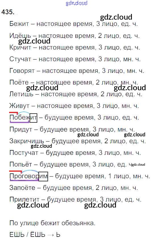 Ответ на задание 435 Учебник Русский язык за 4 (четвертый) класс Рамзаева 2014 Часть 1, 2