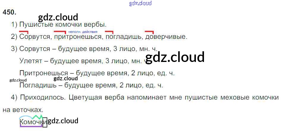 Ответ на задание 450 Учебник Русский язык за 4 (четвертый) класс Рамзаева 2014 Часть 1, 2