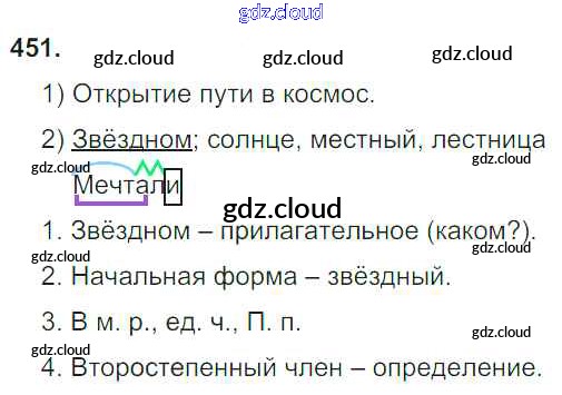 Ответ на задание 451 Учебник Русский язык за 4 (четвертый) класс Рамзаева 2014 Часть 1, 2