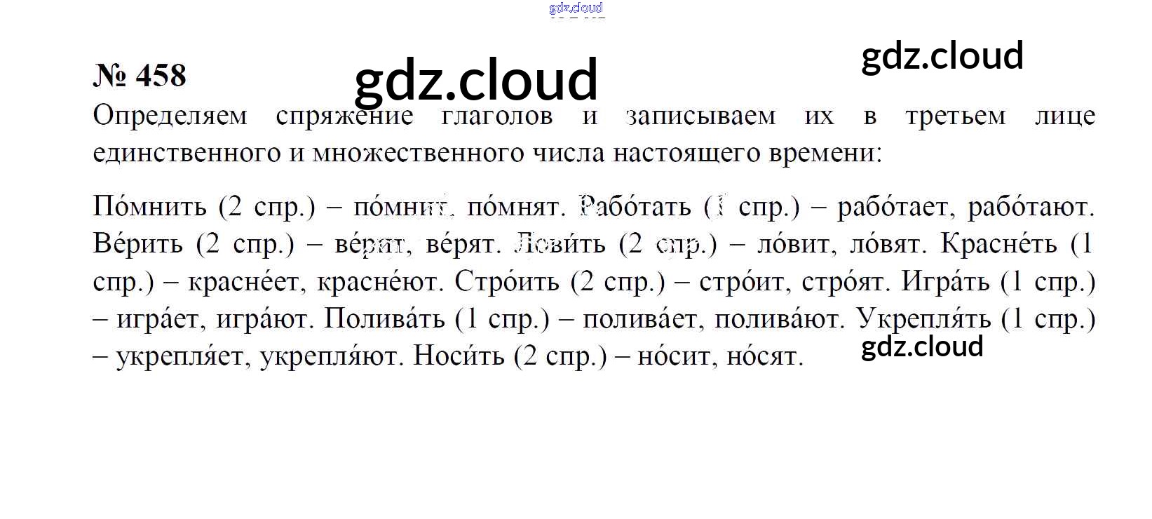 Ответ на задание 458 Учебник Русский язык за 4 (четвертый) класс Рамзаева 2014 Часть 1, 2