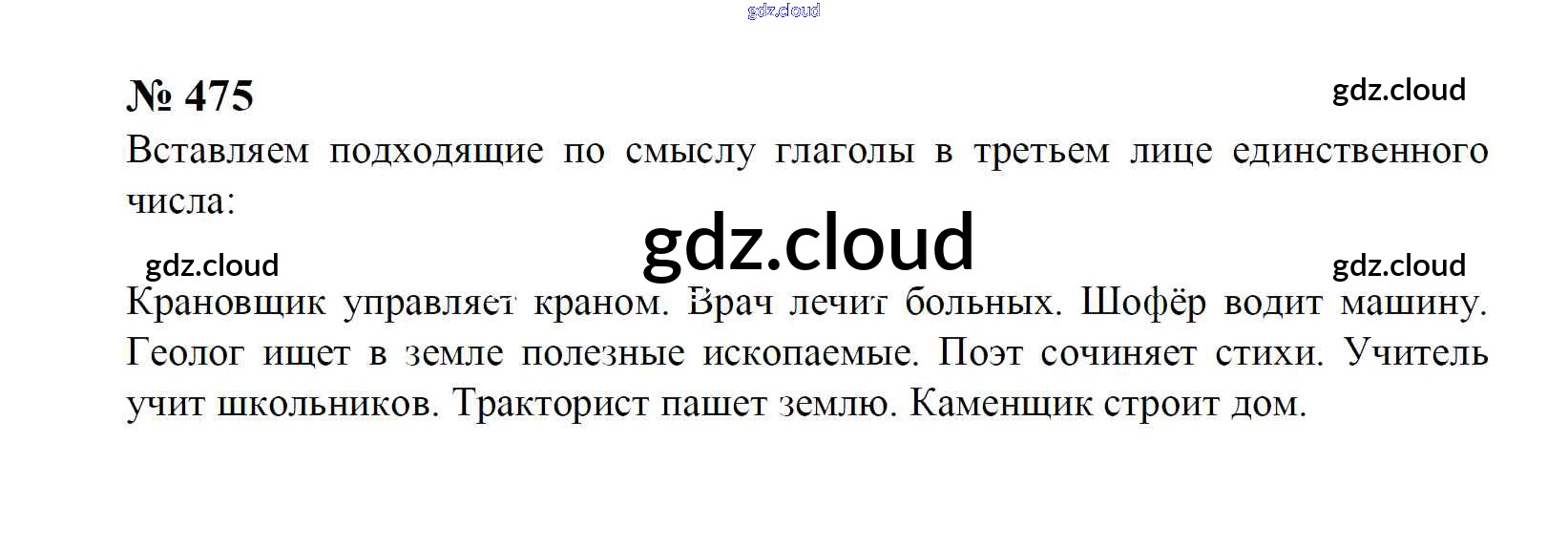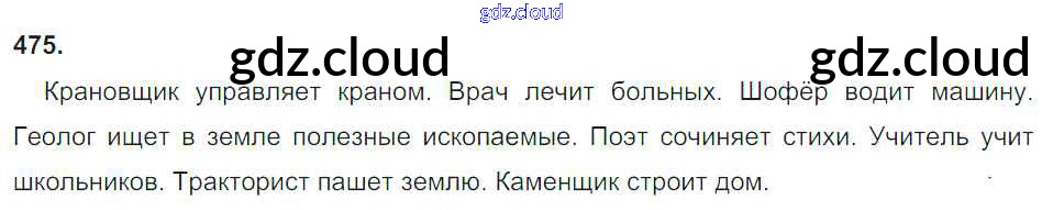 Ответ на задание 475 Учебник Русский язык за 4 (четвертый) класс Рамзаева 2014 Часть 1, 2