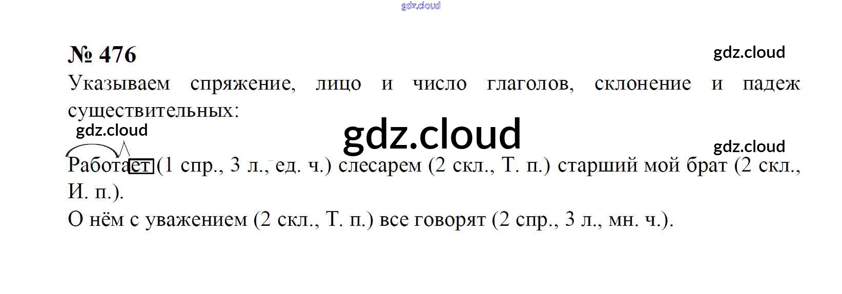 Ответ на задание 476 Учебник Русский язык за 4 (четвертый) класс Рамзаева 2014 Часть 1, 2