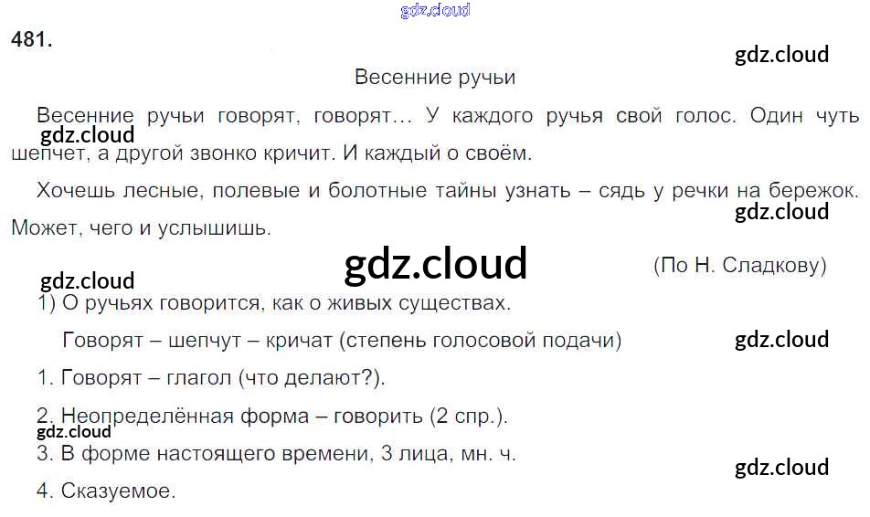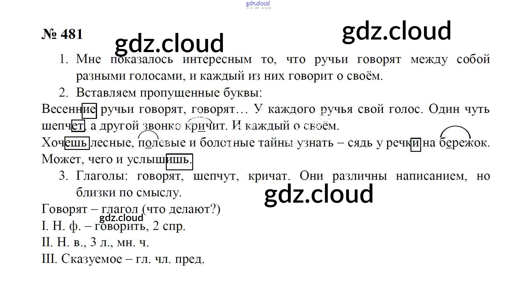 Ответ на задание 481 Учебник Русский язык за 4 (четвертый) класс Рамзаева 2014 Часть 1, 2