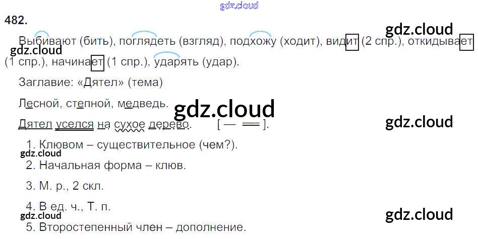 Ответ на задание 482 Учебник Русский язык за 4 (четвертый) класс Рамзаева 2014 Часть 1, 2