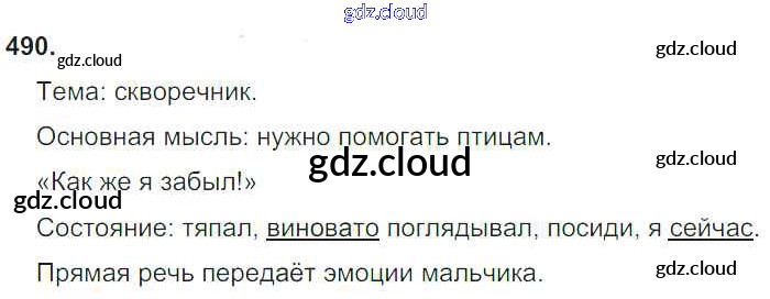 Ответ на задание 490 Учебник Русский язык за 4 (четвертый) класс Рамзаева 2014 Часть 1, 2