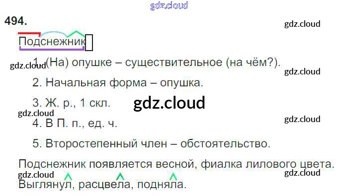 Ответ на задание 494 Учебник Русский язык за 4 (четвертый) класс Рамзаева 2014 Часть 1, 2