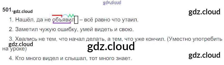 Ответ на задание 501 Учебник Русский язык за 4 (четвертый) класс Рамзаева 2014 Часть 1, 2