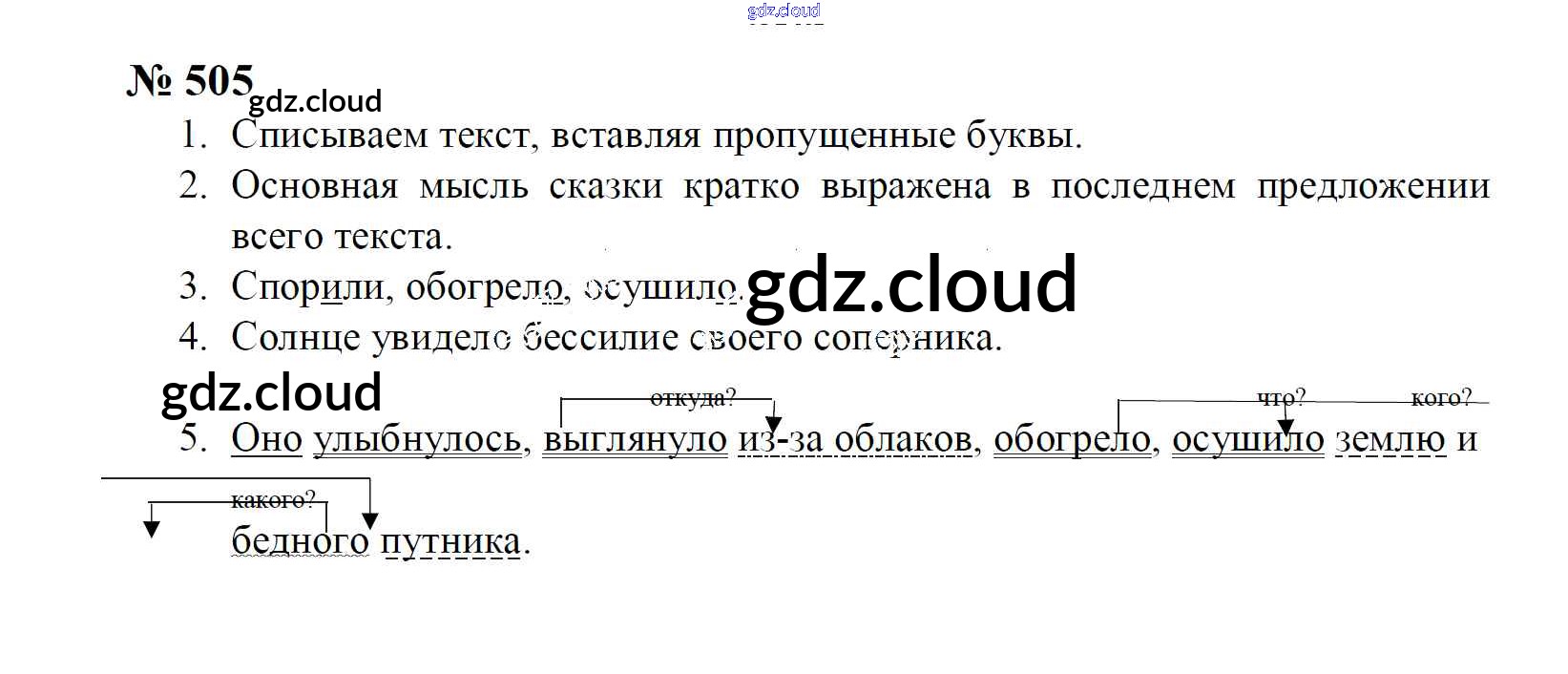 Ответ на задание 505 Учебник Русский язык за 4 (четвертый) класс Рамзаева 2014 Часть 1, 2