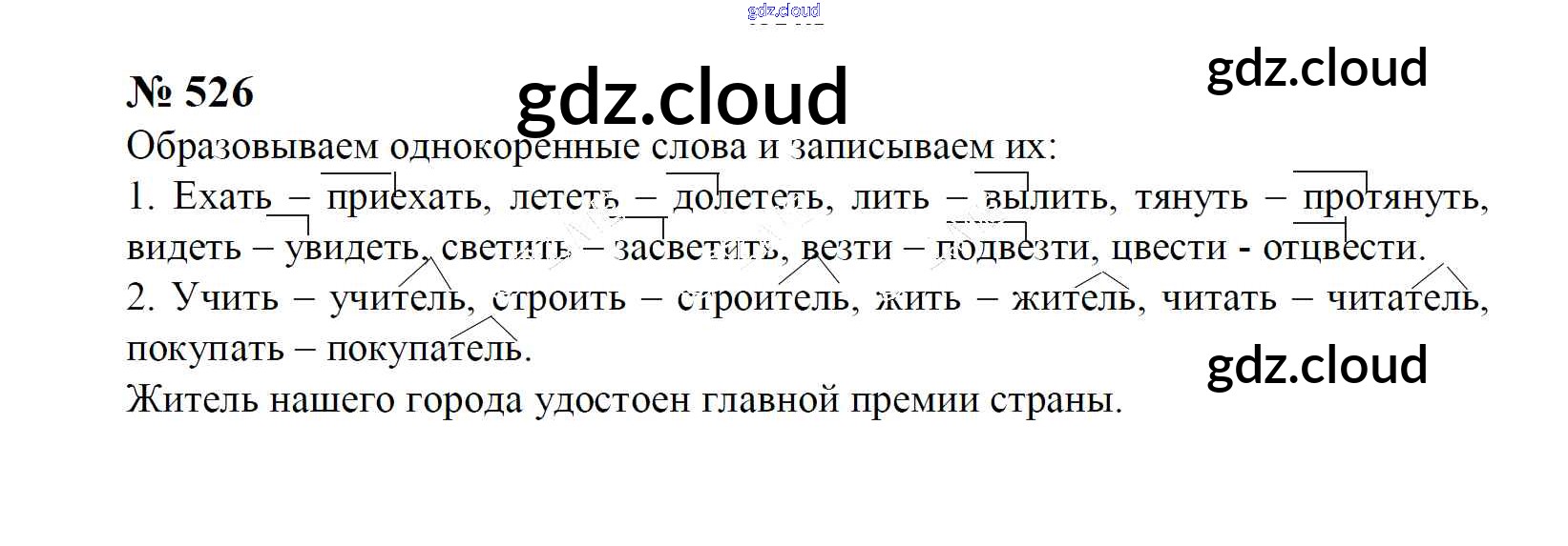 Ответ на задание 526 Учебник Русский язык за 4 (четвертый) класс Рамзаева 2014 Часть 1, 2