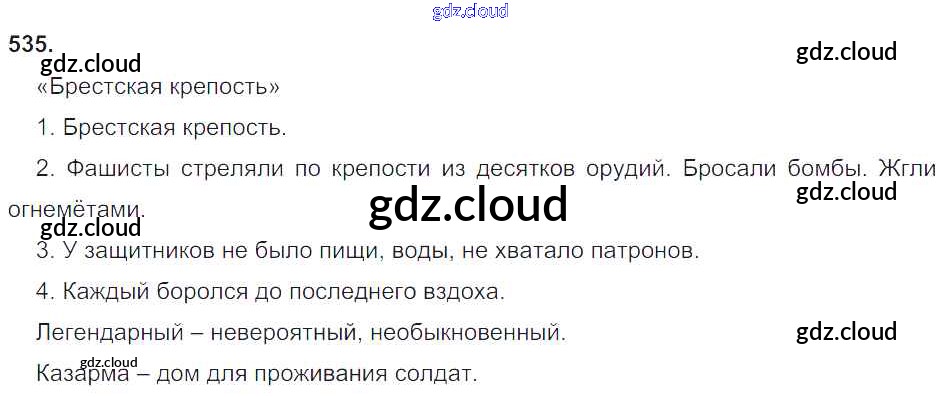 Ответ на задание 535 Учебник Русский язык за 4 (четвертый) класс Рамзаева 2014 Часть 1, 2