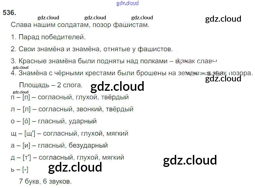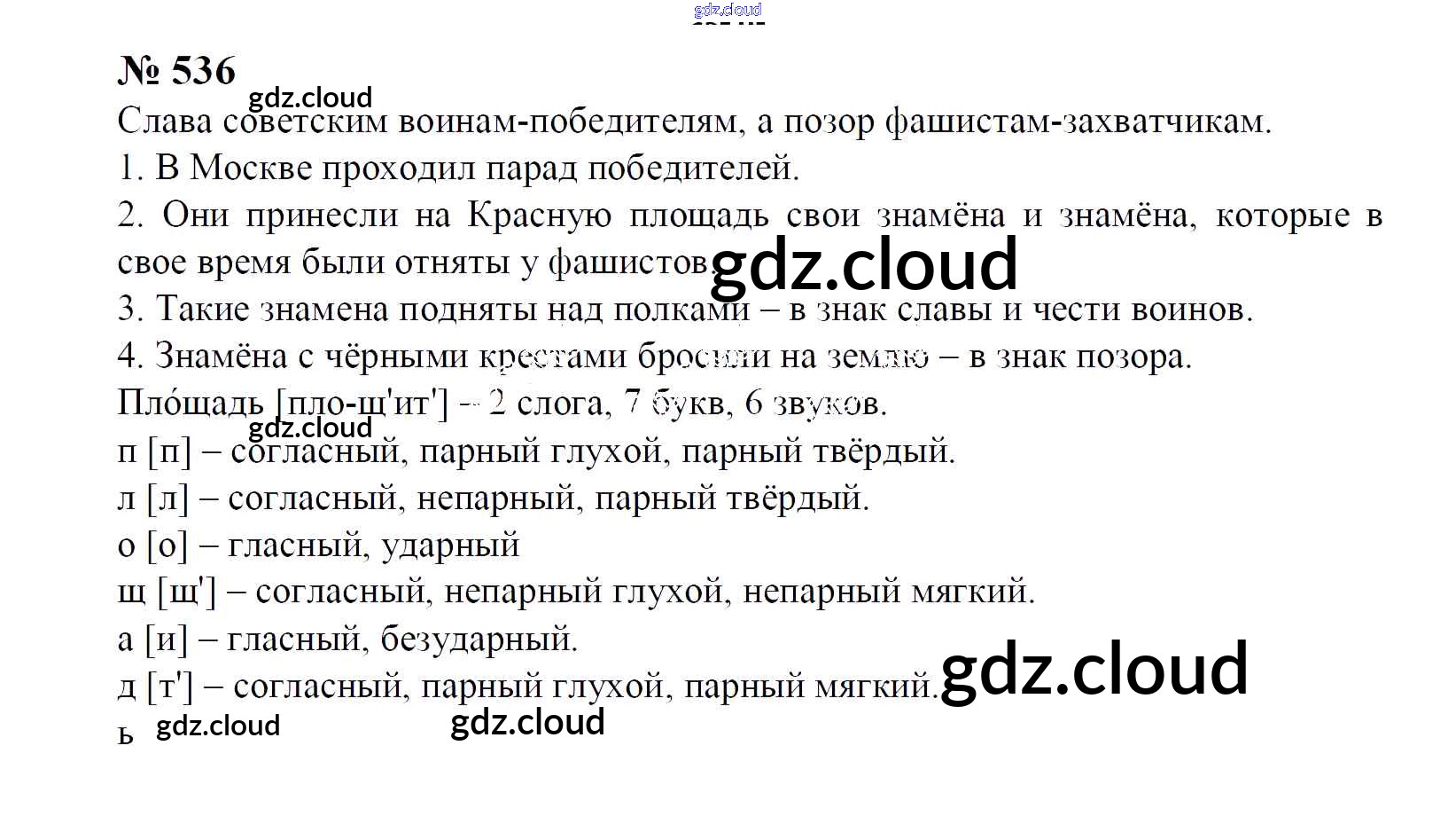 Ответ на задание 536 Учебник Русский язык за 4 (четвертый) класс Рамзаева 2014 Часть 1, 2
