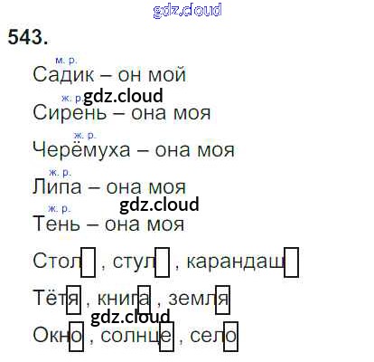 Ответ на задание 543 Учебник Русский язык за 4 (четвертый) класс Рамзаева 2014 Часть 1, 2