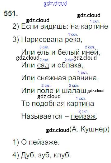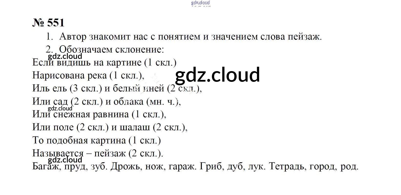 Ответ на задание 551 Учебник Русский язык за 4 (четвертый) класс Рамзаева 2014 Часть 1, 2