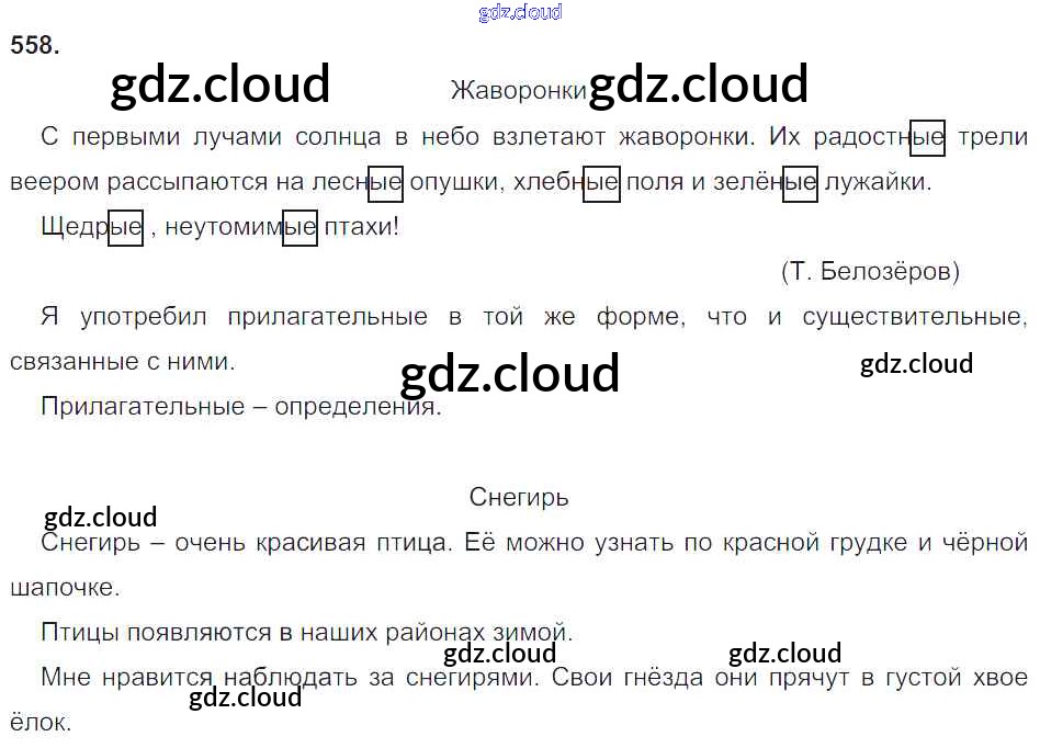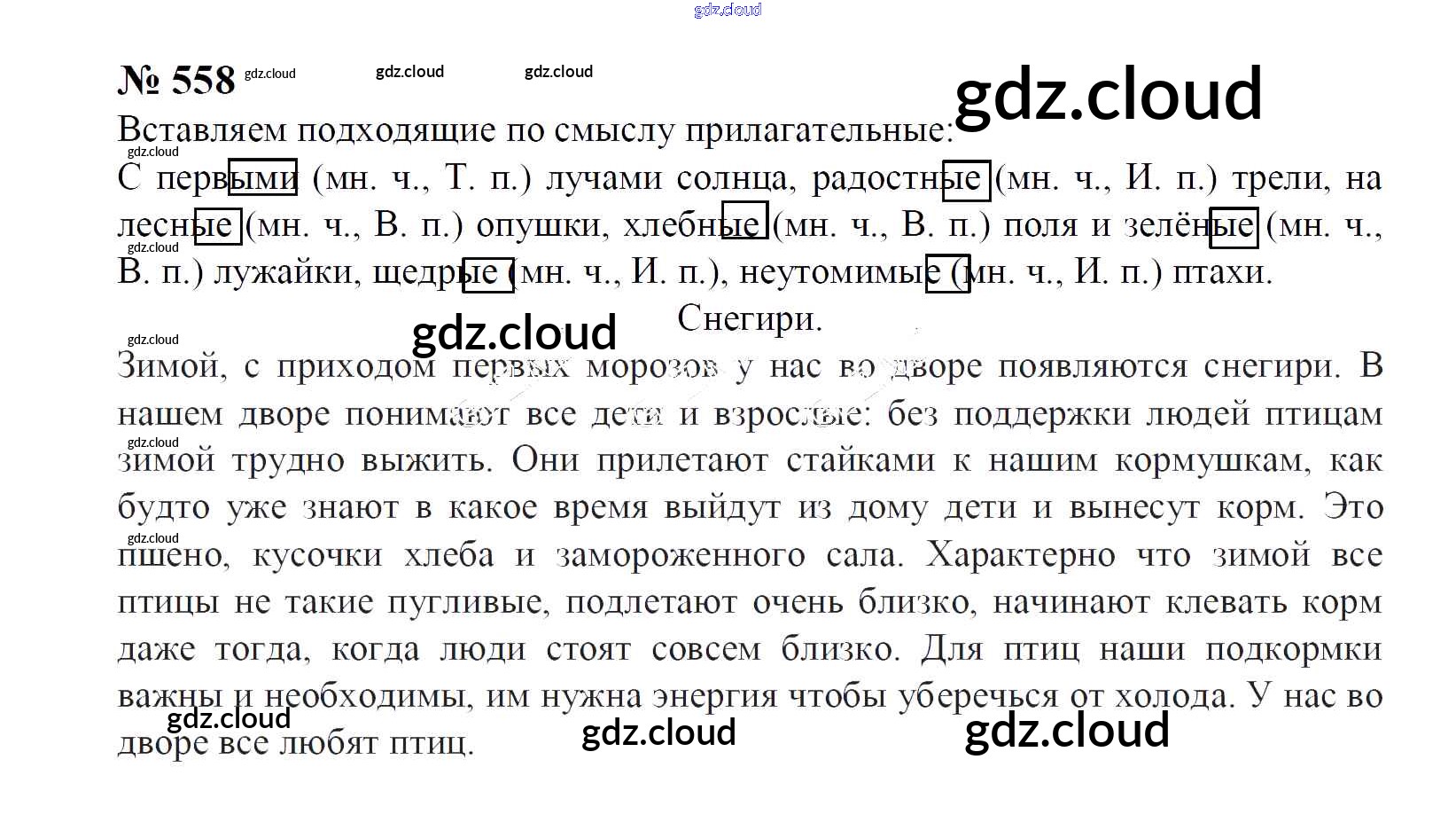 Ответ на задание 558 Учебник Русский язык за 4 (четвертый) класс Рамзаева 2014 Часть 1, 2