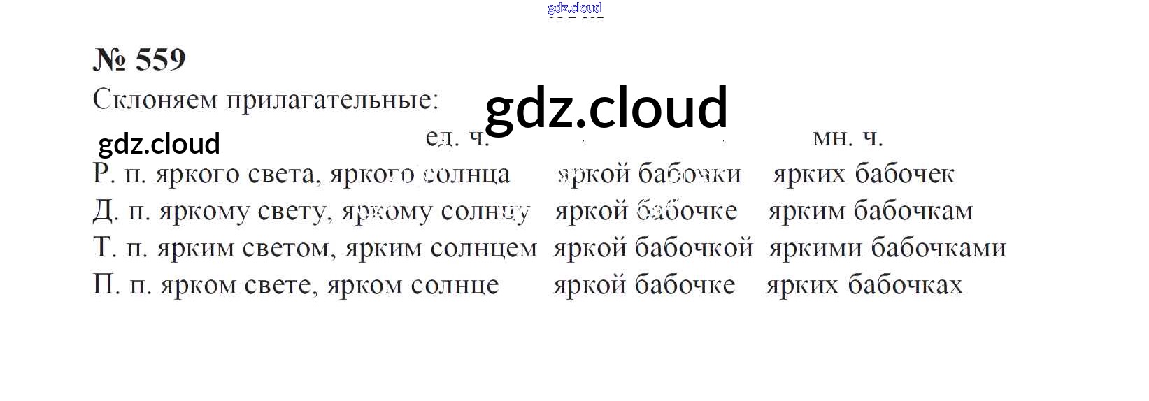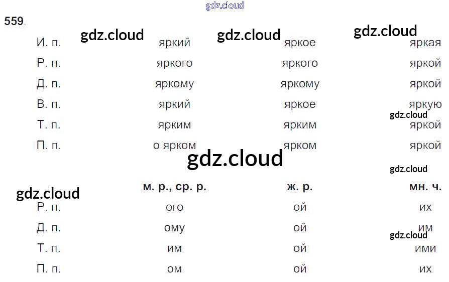 Ответ на задание 559 Учебник Русский язык за 4 (четвертый) класс Рамзаева 2014 Часть 1, 2