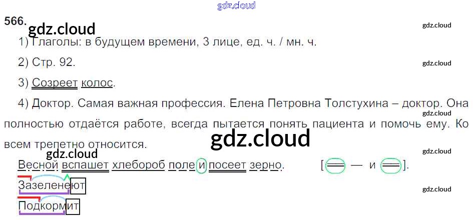 Ответ на задание 566 Учебник Русский язык за 4 (четвертый) класс Рамзаева 2014 Часть 1, 2