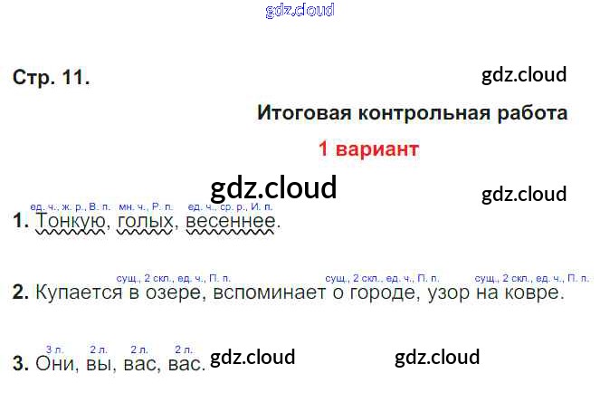 Ответ на задание 11 Тетрадь для контрольных работ Русский язык за 4 (четвертый) класс Романова, Петленко Начальная школа XXI века 2018