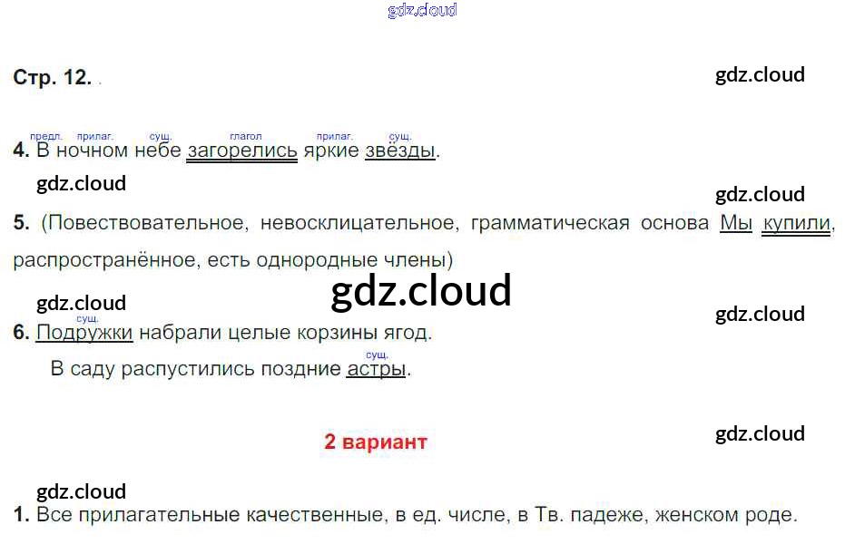 Ответ на задание 12 Тетрадь для контрольных работ Русский язык за 4 (четвертый) класс Романова, Петленко Начальная школа XXI века 2018
