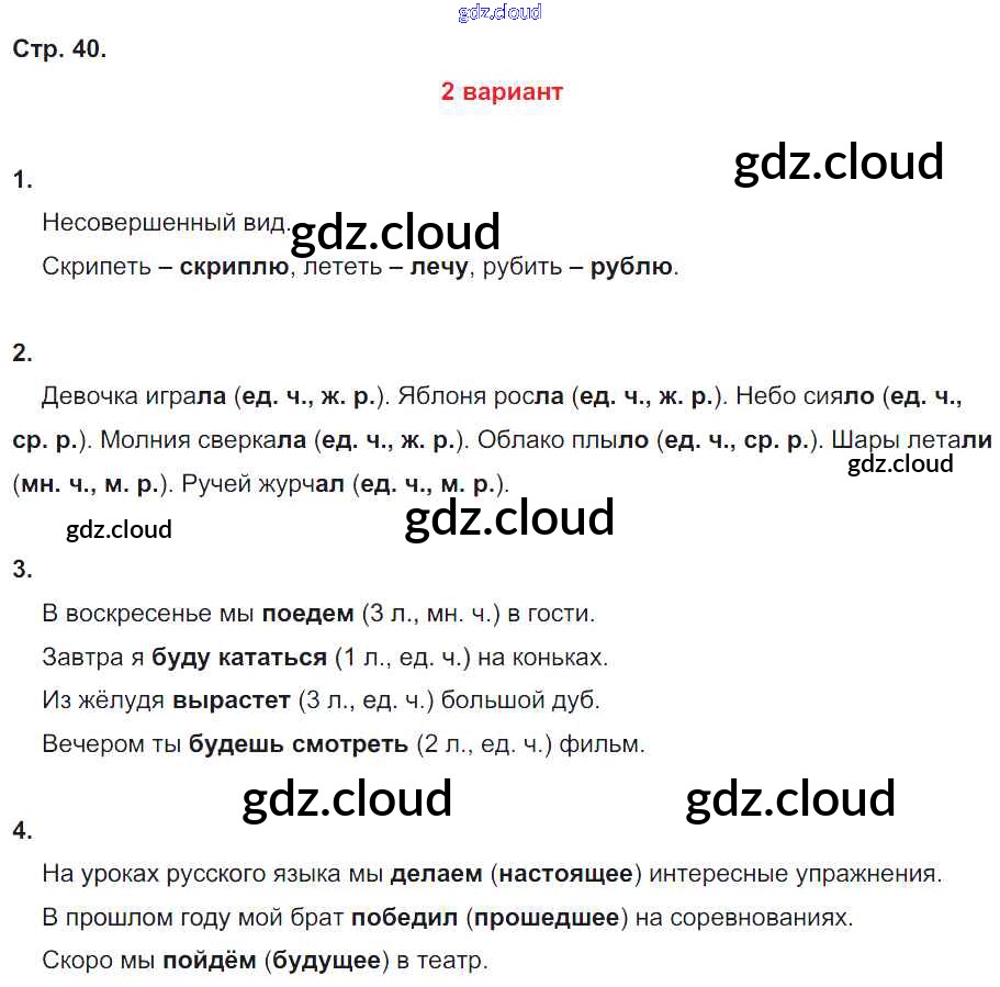 Ответ на задание 40 Тетрадь для контрольных работ Русский язык за 4 (четвертый) класс Романова, Петленко Начальная школа XXI века 2018
