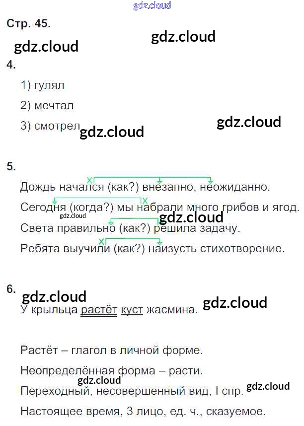 Ответ на задание 45 Тетрадь для контрольных работ Русский язык за 4 (четвертый) класс Романова, Петленко Начальная школа XXI века 2018