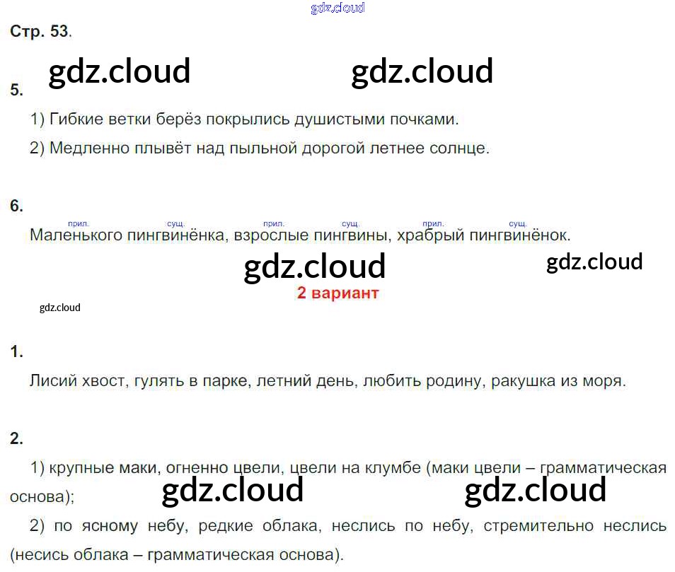 Ответ на задание 53 Тетрадь для контрольных работ Русский язык за 4 (четвертый) класс Романова, Петленко Начальная школа XXI века 2018