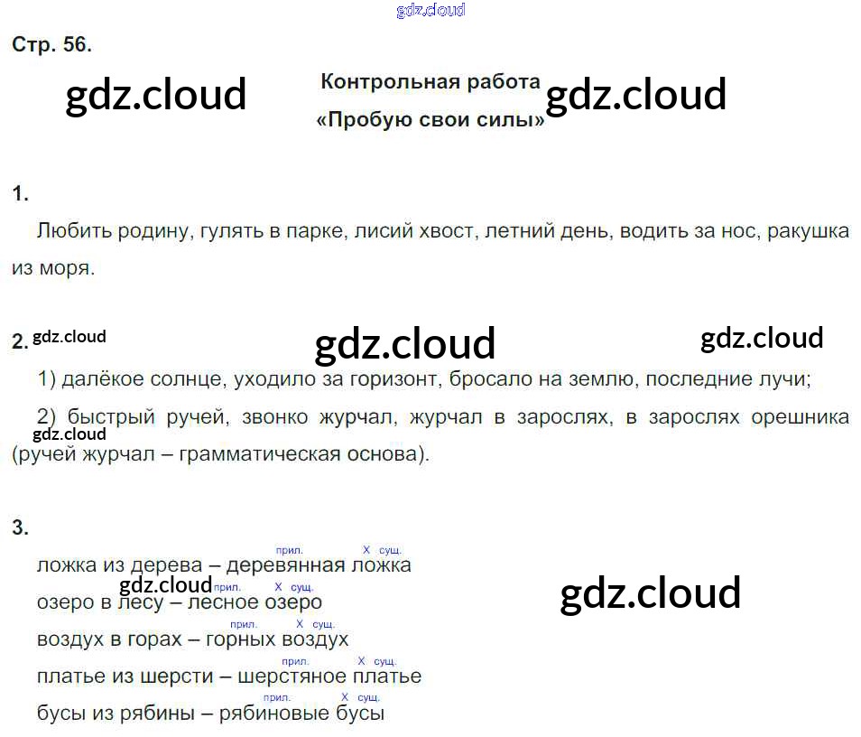 Ответ на задание 56 Тетрадь для контрольных работ Русский язык за 4 (четвертый) класс Романова, Петленко Начальная школа XXI века 2018