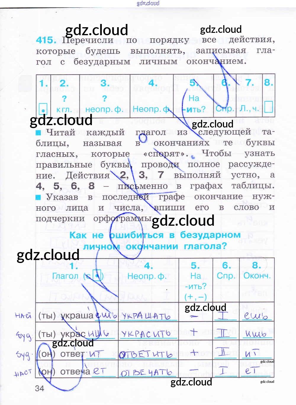Ответ на задание 34 Рабочая тетрадь Русский язык за 4 (четвертый) класс Соловейчик, Кузьменко Гармония 2012 Часть 1, 2, 3