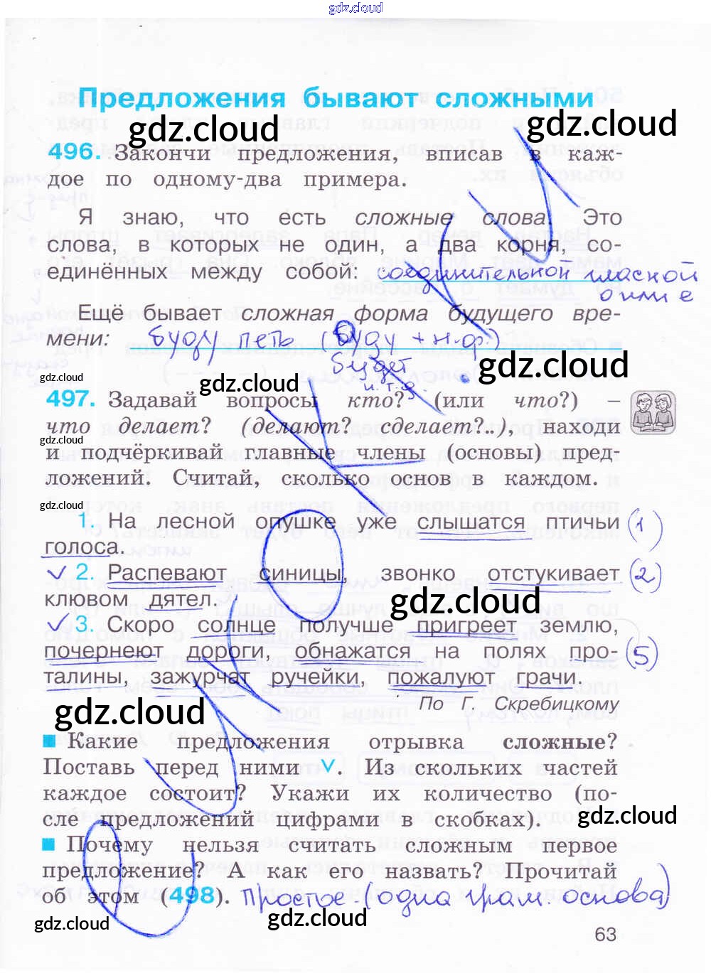 Ответ на задание 63 Рабочая тетрадь Русский язык за 4 (четвертый) класс Соловейчик, Кузьменко Гармония 2012 Часть 1, 2, 3