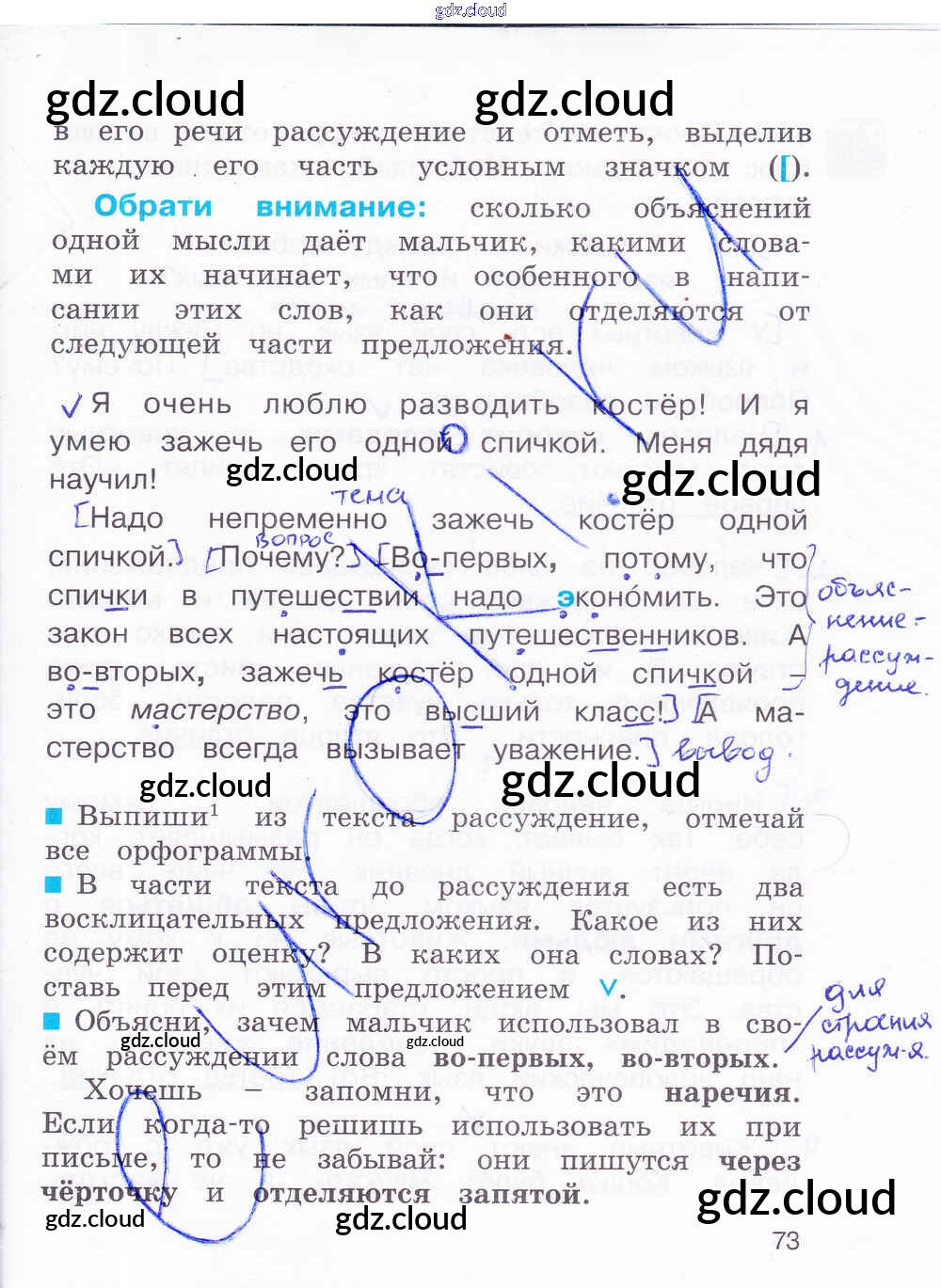 Ответ на задание 73 Рабочая тетрадь Русский язык за 4 (четвертый) класс Соловейчик, Кузьменко Гармония 2012 Часть 1, 2, 3