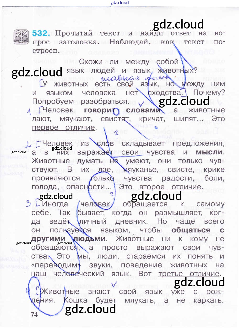 Ответ на задание 74 Рабочая тетрадь Русский язык за 4 (четвертый) класс Соловейчик, Кузьменко Гармония 2012 Часть 1, 2, 3